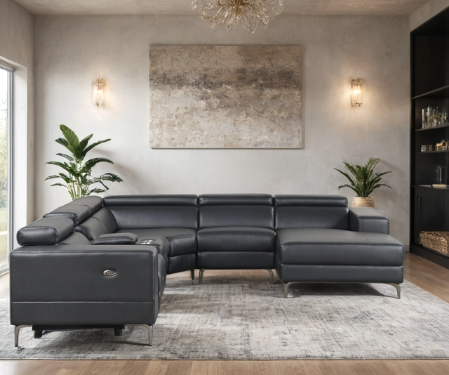 Seccional reclinable robusto, perfecto para crear un espacio de entretenimiento acogedor.